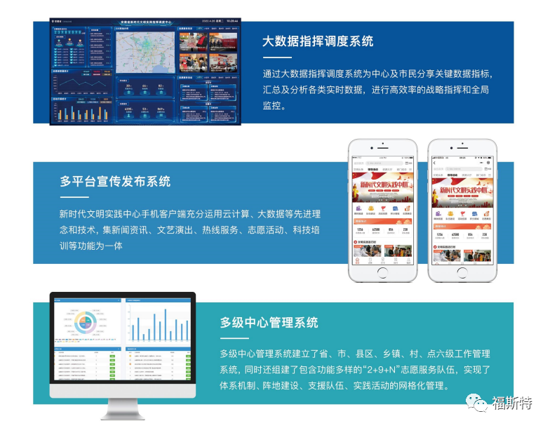 安徽福斯特信息技術(shù)有限公司持續(xù)助力新時代文明實踐中心建設(shè),充分利用大數(shù)據(jù)、云計算、移動互聯(lián)網(wǎng)等新一代信息技術(shù),打造新時代文明實踐中心云平臺,完善平臺動員、整合、引導、服務、創(chuàng)新和保障能力,實現(xiàn)新時代文明實踐中心的可持續(xù)運營。